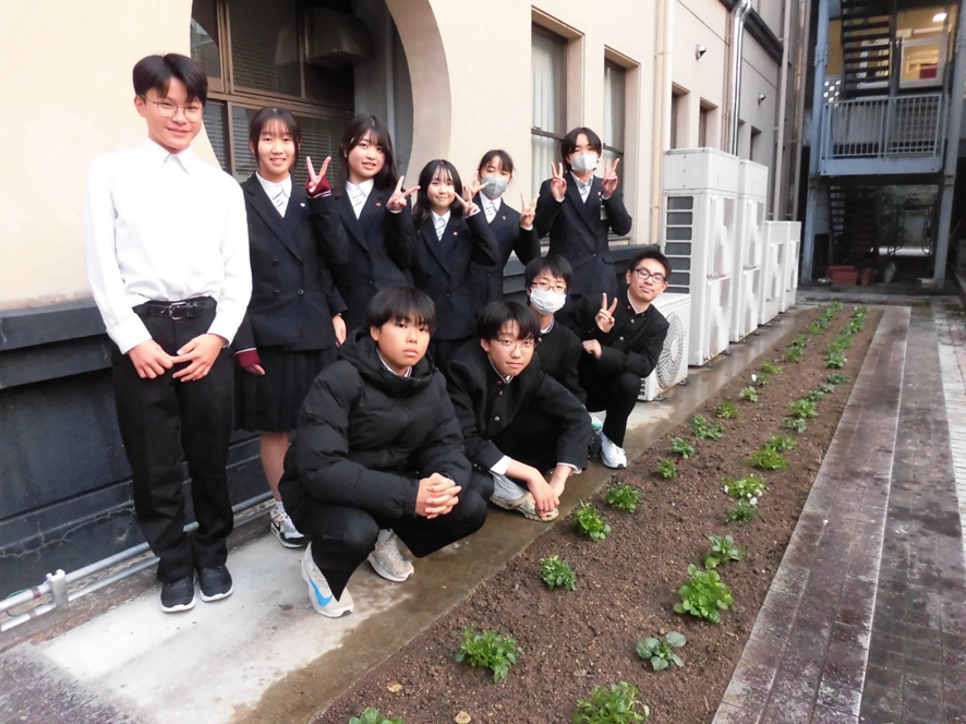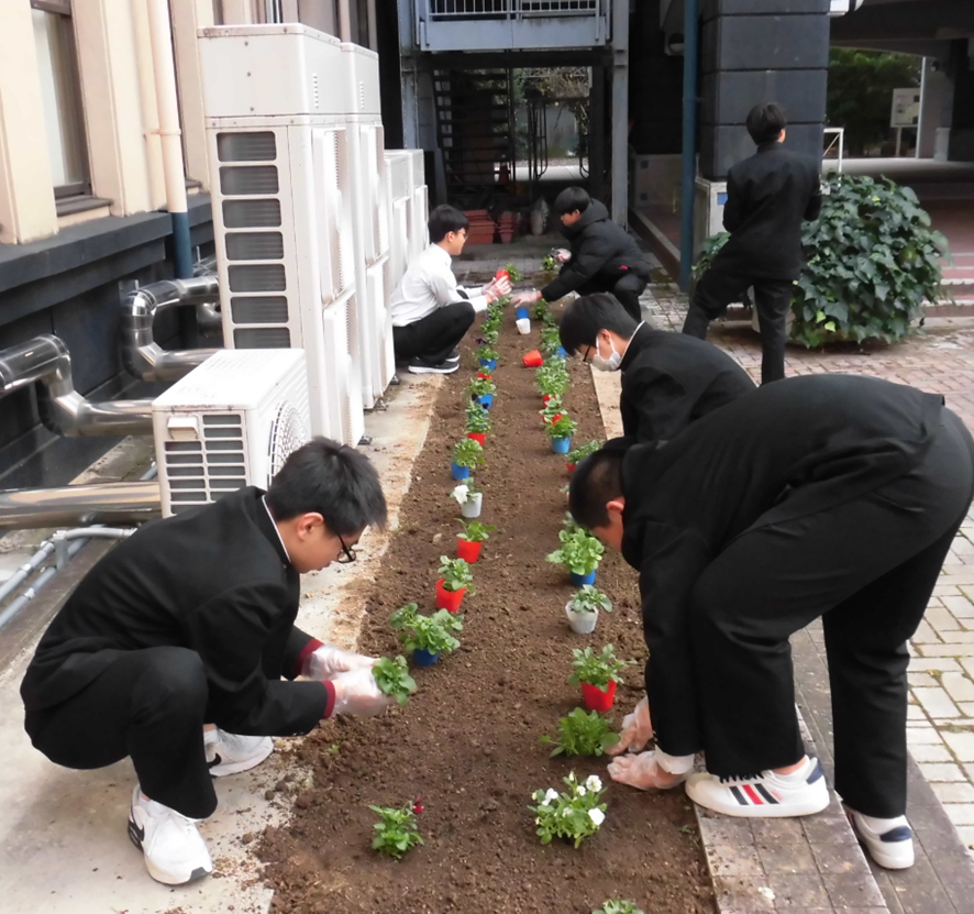11月20日(木)の放課後に、環境美化委員の活動として、中庭にある花壇に花を植えました。少しでも学校の雰囲気が明るくなるようにと毎年行っています。寒い中、自分たちで配置を考え、学年を越えて協力することができていました。また、片付けもてきぱきと動いてくれ、予定よりも早く終わらせることができました!