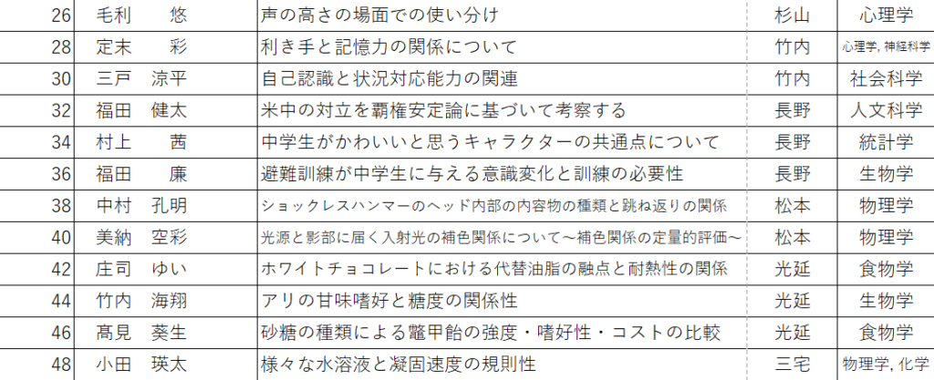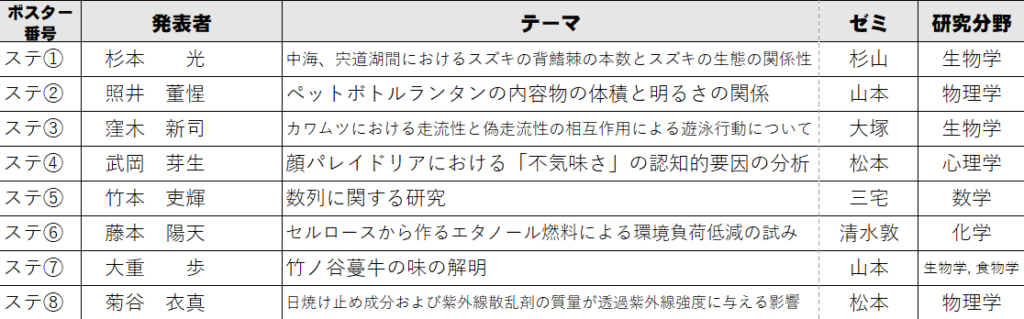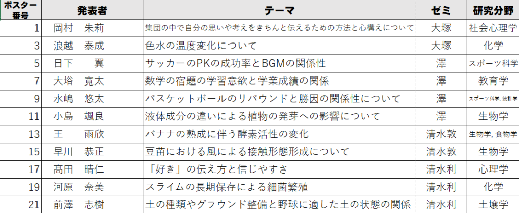 2月21日(土)に実施する「課題研究発表会」のポスター番号と発表グループが決まりましたのでお知らせします。