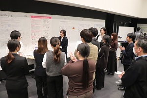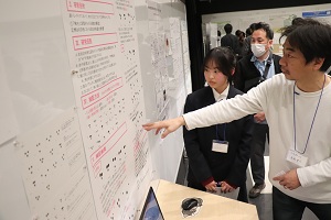 最初は空腹をも忘れるくらい緊張していて、たくさんの専門の方々に囲まれて不安でいっぱいでしたが、発表を聞いていくうちに自分の発表が待ち遠しくなっていくのを感じました。そして迎えた発表では教授の方々も聴きに来てくださり、本当に多くのアドバイスをいただきました。特に、自分でもなんでだろうと考えていたところについて、顔の見え方が目と口ではなく目と鼻に見えているから見え方が根本的に違っているかもということや、アンケートの取り方を変えてみてはどうかということ、心理学的な性質を活かして図形の形を変えてみてはどうかということなど、自分では思いつかなかった方法の数々に圧倒されました。もしかしたらアニメが関係してるんじゃないか、と考えてくださった方もいて、そんなこともあるのか!と強い衝撃を受けたのをよく覚えています。