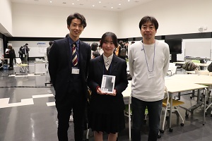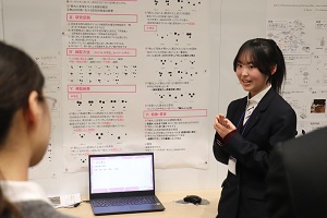 2月27日(金)に中学校3年生の武岡芽生さんが、立命館大学大阪いばらきキャンパスで開催された「北摂心理学連合・関西心理学会 卒論・修論など合同発表集会」に参加しました。武岡さんの研究テーマである「顔パレイドリア」の参考文献の著者が、立命館大学総合心理学部の高橋康介教授になります。ゼミの担当教員が、武岡さんの研究に関する相談等で高橋教授と連絡を取り合っていたことから、今回の発表集会の機会を得ることができました。大阪大学や立命館大学、京都大学などの学部生や院生が発表する中、たった一人中学生での参加でしたが、堂々と自分の課題研究について発表を行い、質疑応答も活発に行われていました。高橋教授も発表をお聞きくださり、直々に研究に対するアドバイスもいただくことができました。その他にも、大阪大学の教授や、関西心理学会の会長も発表を聞いてくださり、たくさんの激励の言葉をいただきました。普通では体験できない、大変貴重な経験をすることができ、武岡さん本人もとても喜んでいましたが、津山中学校としても非常に喜ばしいことでした。