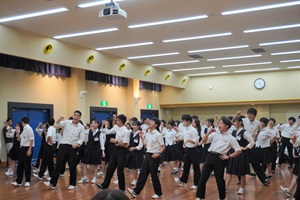 初日は、全校生徒をあげて歓迎会を開き、代表生徒による韓国語・英語・日本語を交えたあいさつを行い、津山中学校有志生徒による「和っしょい津山」を披露しました。韓国の生徒からは、韓国の歌と日本の歌に合わせたダンスが披露されました。放課後には、50名をこえる生徒がフリートークに集まり、野球やK-POPなどの話題で盛り上がっていました。