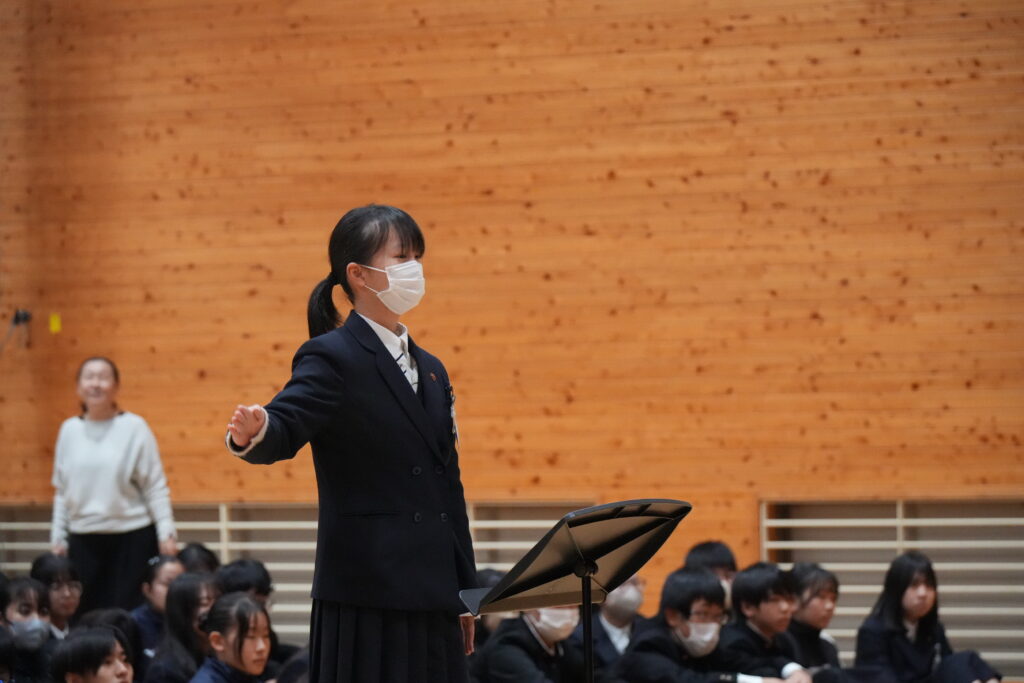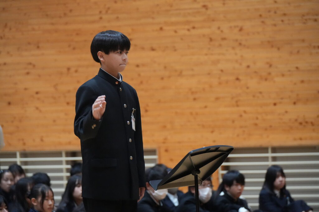 11月26日(水)に合唱祭を実施しました。1年生はA組が「大切なもの」、B組が「夢の世界を」、学年全体で「COSMOS」を歌唱しました。初めての合唱祭でトップバッターということもあり、緊張した様子でしたが、元気に明るく歌っている様子が印象的でした!放課後の時間を使って練習を重ねたことで、クラス・学年の雰囲気も明るくなりました。