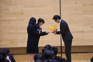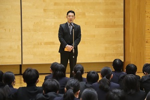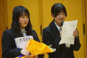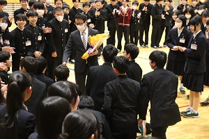 4月17日(金)に離任式を行いました。式では、離任される先生方お一人おひとりから温かいメッセージをいただきました。先生方から教えていただいたことを胸に頑張っていきましょう。