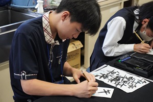 2日目は、書写、美術、英語、体育の授業に参加してもらいました。お互いに日本語や英語を交えながら、コミュニケーションをとって、充実した時間を過ごせました。