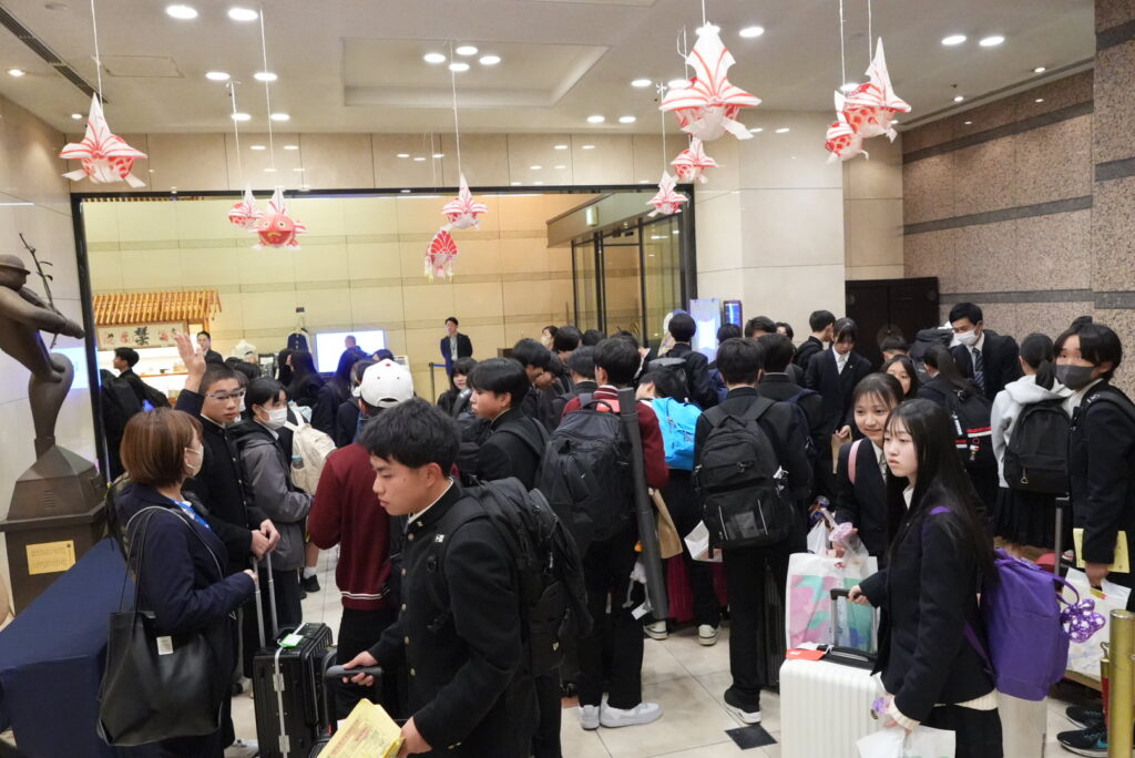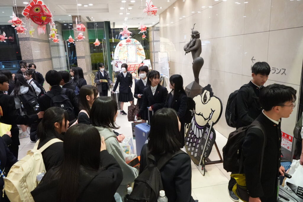 1日目終了!無事ホテルへ 本日の日程を全て終了して,無事にホテルに入りました!東京スカイツリーの夜景を楽しみ,ソラマチでの夕食美味しかったと多くの生徒が満喫していました!ゆっくり休んで,明日に備えてほしいです。