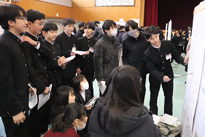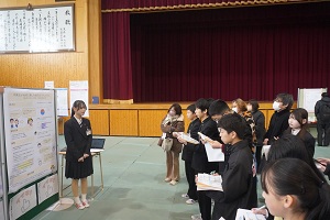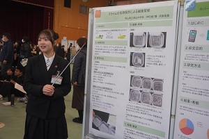 2月21日(土)に課題研究発表会を実施しました。本日はポスター発表の様子をお届けします!はじめはたくさんの来場者の方に驚き、緊張した様子でしたが、1年間頑張ってきた成果をみせようと、元気よく堂々と発表していました!また、質問にも丁寧に答えるなど、来場者の方と積極的にコミュニケーションを取っていた姿も印象的でした!