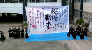 4月14日(火)に書道部新入生歓迎書道パフォーマンスが開催されました。天候はあいにくの雨でしたが、沢山の方が見に来てくださり、素敵なパフォーマンスを行うことができました。今年の大文字は「桜梅桃李」でした!「桜梅桃李」には、桜、梅、桃、李がそれぞれ違った花を咲かせるように、一人ひとり個性を持っているという意味があります。新入生の皆さんが、桜、梅、桃、李のようにそれぞれの個性を活かし、花を咲かせることができるように書道部一同、心より応援しています!
